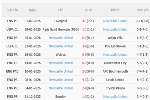 Newcastle mùa này không còn duy trì sự bùng nổ như giai đoạn thăng hoa trước đó, nhưng đổi lại họ trở nên thực dụng và kỷ luật hơn. Đặc biệt trong các trận đấu lớn, Newcastle thường chơi rất tập trung và không dễ vỡ trận.