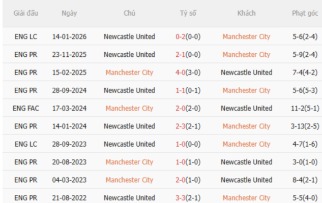 Manchester City thường kiểm soát bóng nhiều và ép trận, có thể hưởng từ 5–7 quả phạt góc tùy thế trận. Newcastle cũng không ít lần tạo góc khi phản công hoặc ép sân đối thủ, dự đoán khoảng 4–6 quả phạt góc. Trận đấu tới 2 đội sẽ tạo ra từ 10-13 quả phạt góc.