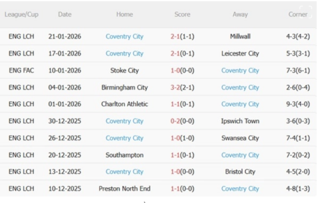 Phong độ gần đây của Coventry